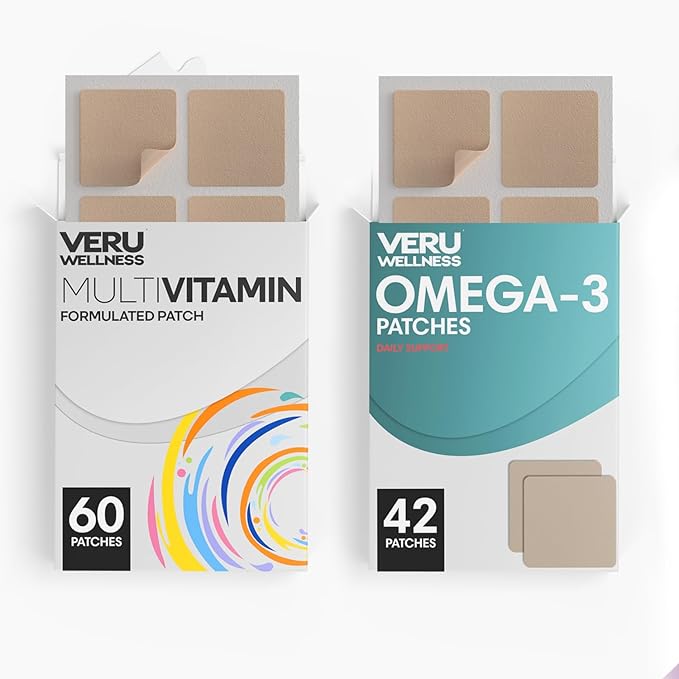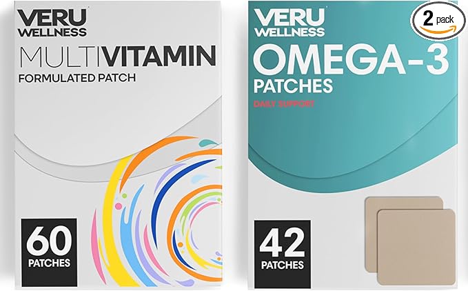 Veru Wellness Daily Essentials Duo Lifestyle Patches - Omega3 - Self Adhesive Time Release Topical Patch, 8-10 Hours (42 Day Supply)