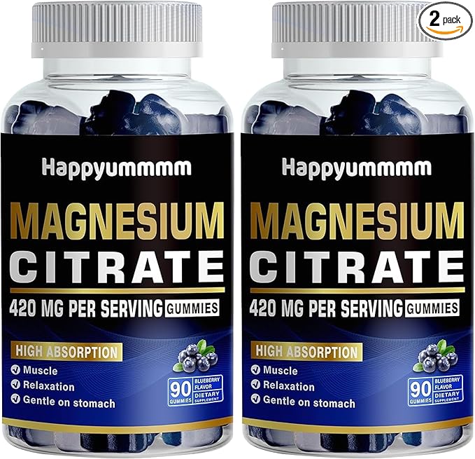 Magnesium Citrate Gummies 420mg per Serving - 180 Blueberry Gummies - Promotes Healthy Relaxation, Muscle, Bone, & Energy Support (2 Pack).