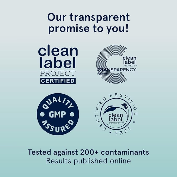 - Full Transparency: We strive to make the cleanest products. Every batch of every product is reviewed for purity and potency by The Clean Label Project. They use independent laboratories to test against 200+ contaminants and publish the results on their website using the respective batch number.