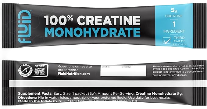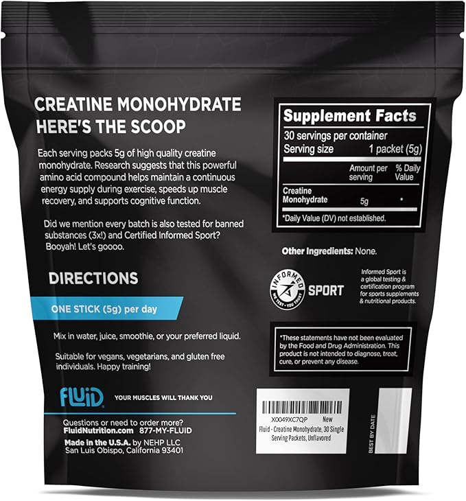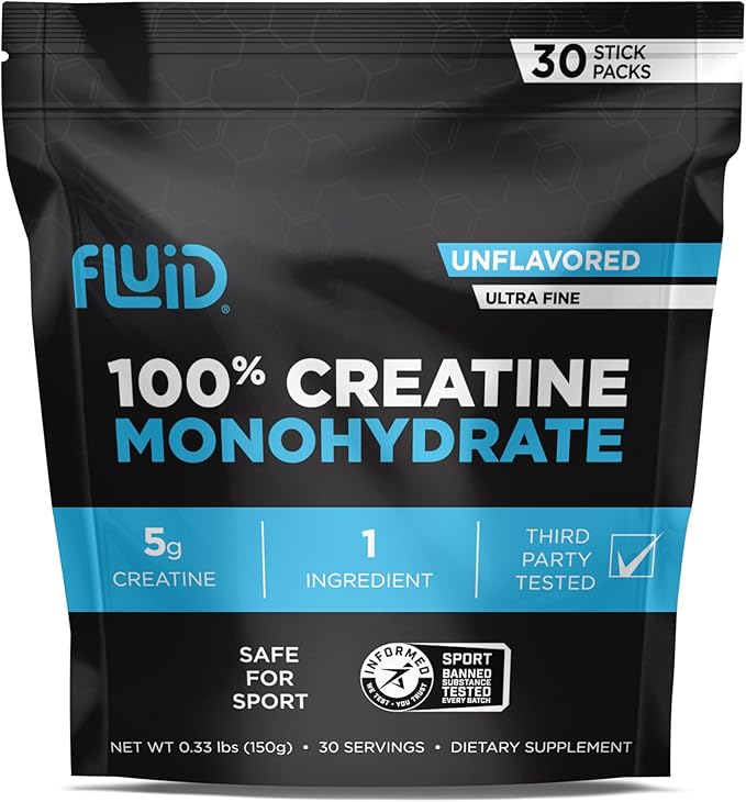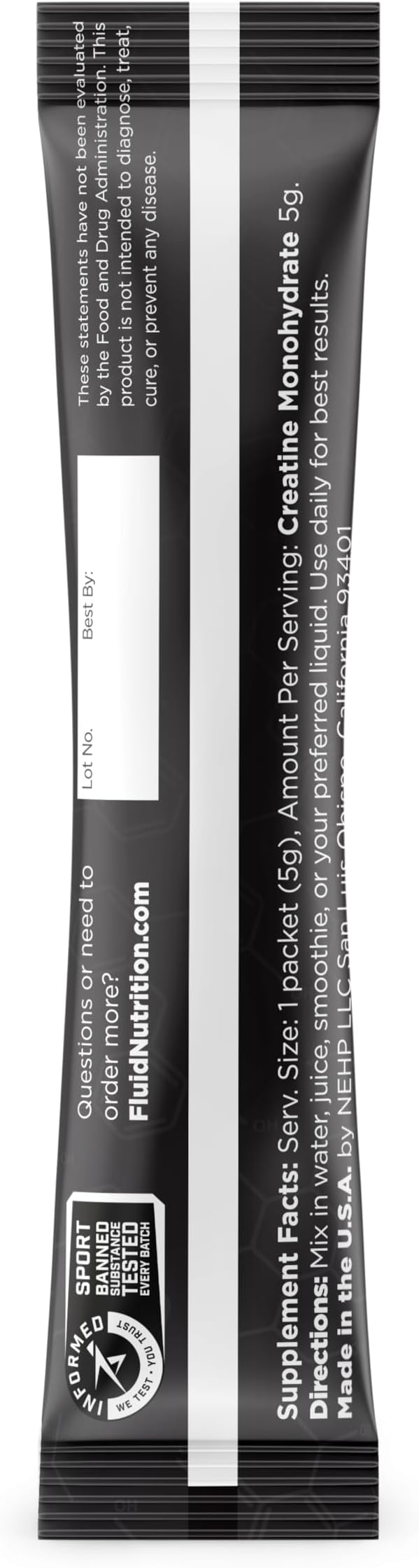 Fluid - Ultra-Fine Micronized 100% Creatine Monohydrate, Informed Sport Certified, Safe for Athletes, 5g Serving (30 Single Servings)