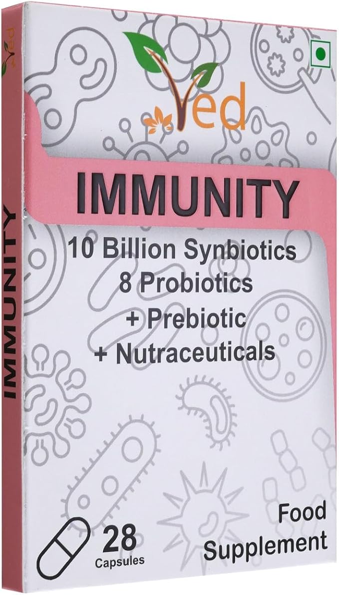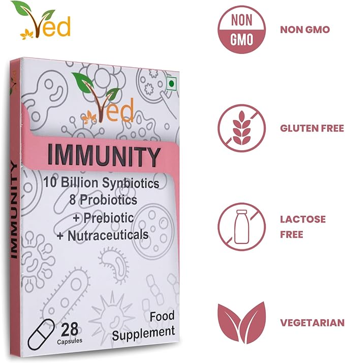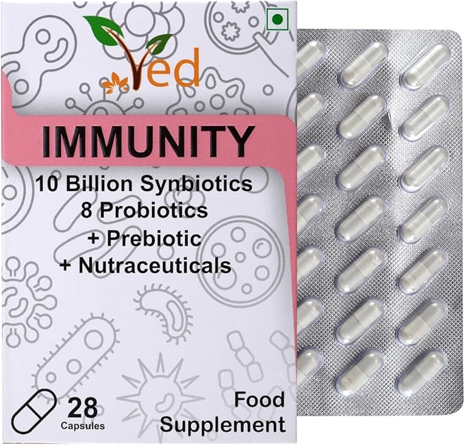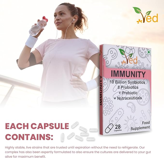 Ved Immunity Complex Probiotics and Prebiotics Complex - 10 Billion CFU - 20 Live Bacterial Cultures - 28 Probiotic Complex- Lactobacillus Plantarum, Casei.