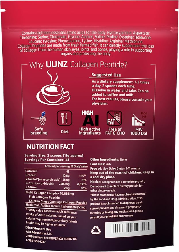 - Other Matters Noted - 1 spoon inside the bag, our collagen supplement is free of soy, dairy, gluten and tree nuts, please keep the product in a cool and dry place, if you have any questions, please send to "UUNZ"