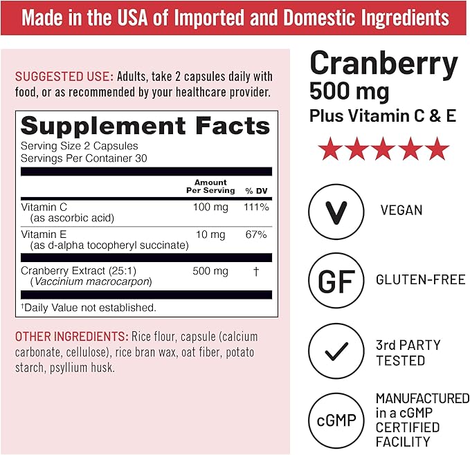 - 3rd PARTY TESTED, QUALITY ASSURED: Cranberry Pills are 3rd party tested for purity and efficacy and manufactured in the USA with high-quality ingredients from around the world in a cGMP-certified facility.