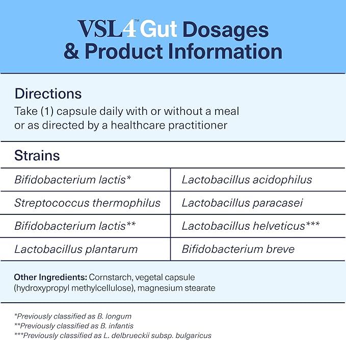 - MULTI-STRAIN PROBIOTIC - VSL4 Gut features VSL#3's 8 probiotic strains but in a shelf-stable formula. This includes 8 complementary strains from 3 different genera to support digestive health and gut health.*