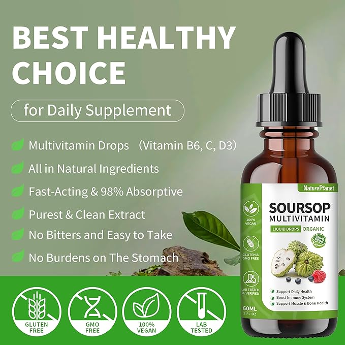 - 100% Natural Ingredients: NaturePlanet soursop bitters drops contain only organic soursop extract, plant-based glycerin, and pure water, free from gluten, wheat, and artificial additives. Rich in Vitamin B6, C, D3, the antioxidants to boost immune system and gut detox