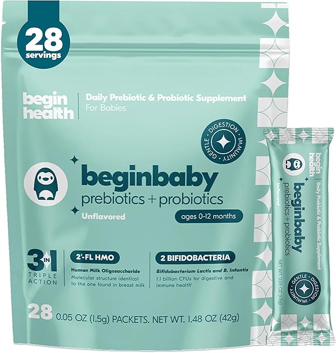 Begin Health BeginBaby Prebiotics and Probiotics for Infants 0-12 Months | Baby Formula Prebiotic + Probiotic Powder with 2'-FL HMO's & B. Infantis for Optimal Digestion | 28-Packs - Unflavored