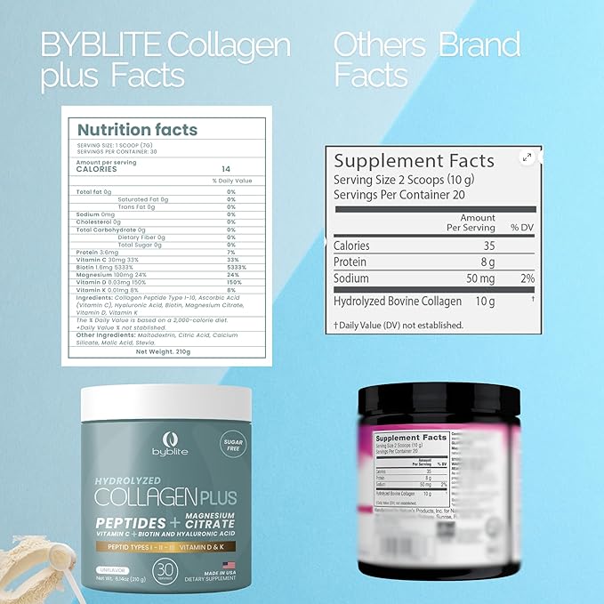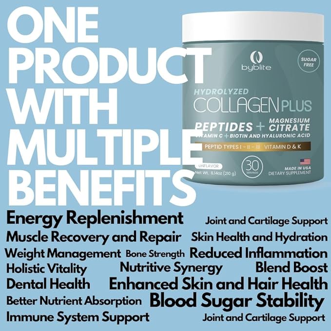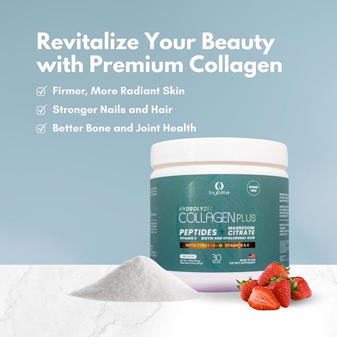 Colageno Hidrolizado para Mejorar Articulaciones + Citrato de Magnesio para tu Salud Digestiva + Peptidos I,II,III + Acido Hialuronico + Biotin + Vitamina C, D y K y Fortalece tus Uñas y Cabello