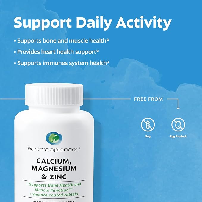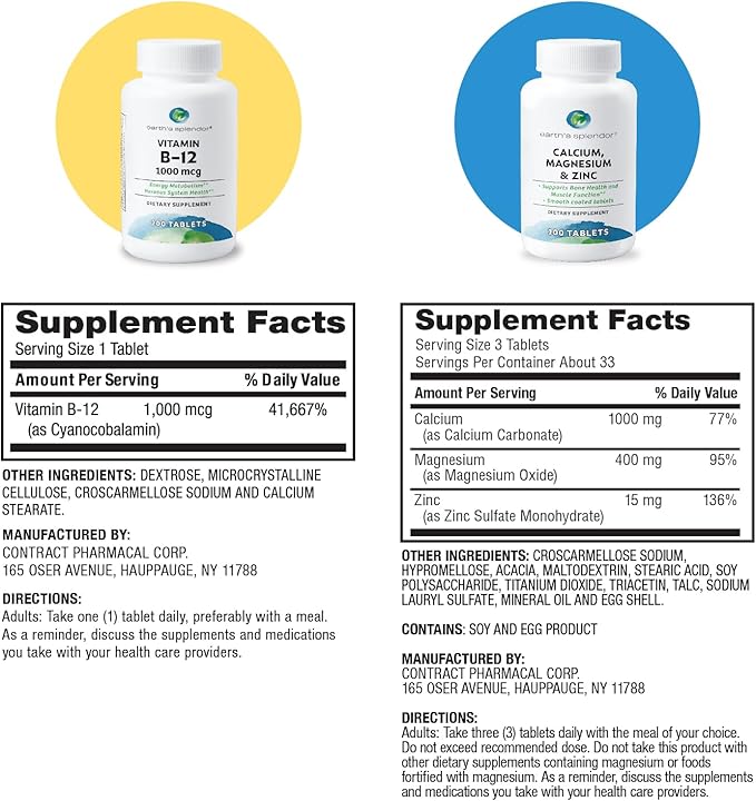 Earth's Splendor: Vitamin B12 & Calcium, Magnesium, Zinc Bundle. Gluten Free, No Artificial Flavors or Colors, Supports Energy Metabolism & Bone Health