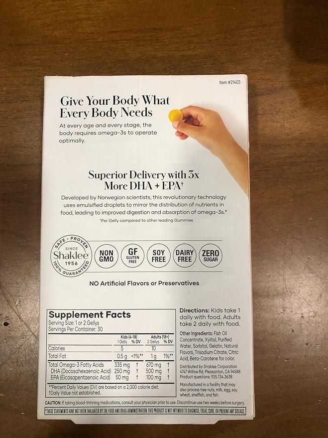 - Shaklee - Omega-3 Gellys - Strawberry Lemonade Gummies - 30 Gellys