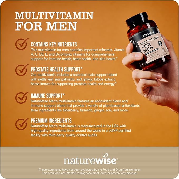 - PREMIUM INGREDIENTS: NatureWise Men's Multivitamin is manufactured in the USA with high-quality ingredients from around the world in a cGMP-certified facility with third-party quality control audits.
