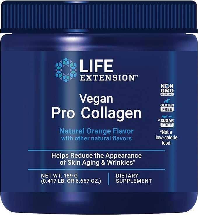 Life Extension Vegan Pro Collagen, Collagen Builder Support, Skin Health, Type I Collagen Amino acids, gotu kola, Vitamin C, Gluten-Free, Non-GMO, Vegan, 30 Servings