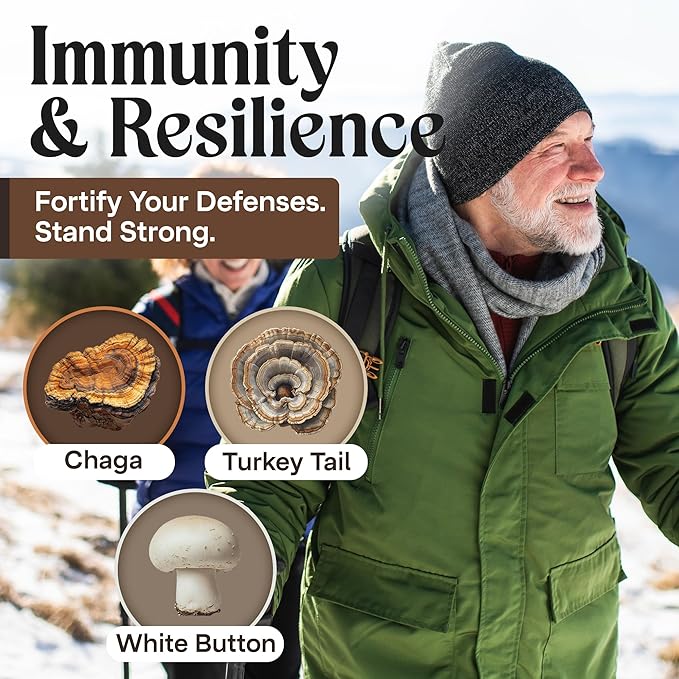 - Antioxidant & Immune Support – Chaga mushrooms are rich in polyphenols and beta-glucans, helping to fight oxidative stress and support overall immune health