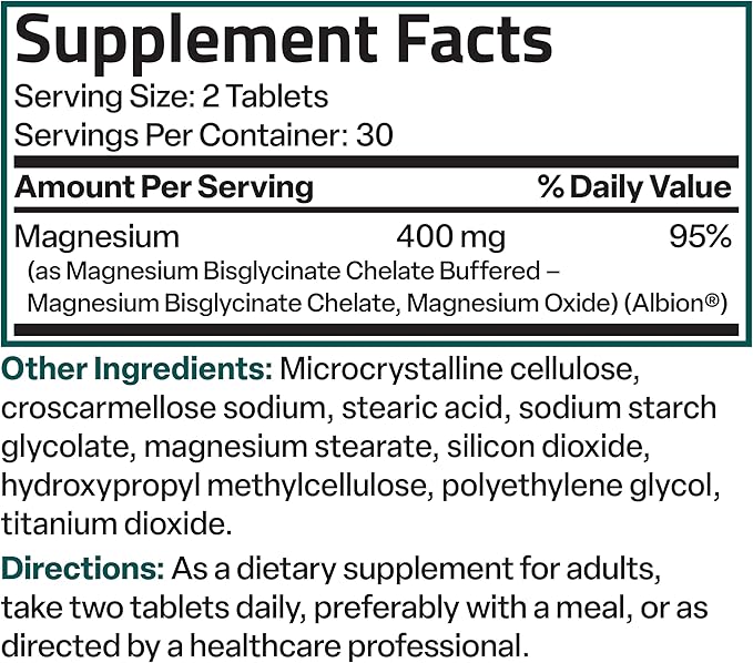 - Chelated For Superior Absorption*: Our Magnesium Glycinate Chelate Buffered Extra Strength binds minerals to amino acids to produce mineral chelates. Mineral Chelates, which are actively transported through the body and are highly absorbable, enable superior replenishment of essential nutrients. Our Extra Strength formula provides 400 MG per serving for superior support (2 Vegetarian Tablets).*