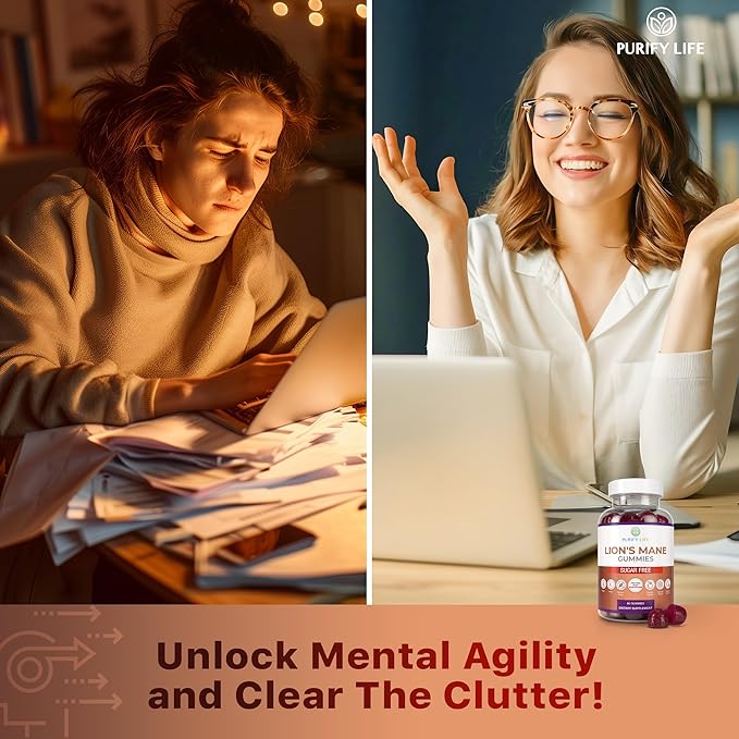 - [Clear Your Mind] - Purify Life's Lion's Mane extract gummies are specially crafted to support mental clarity and focus. Lion's Mane is renowned for its nootropic properties, aiding in concentration, memory recall, mood enhancement, and creativity. Whether you're a student, a professional, or simply want to keep your brain in top shape, these easy-to-take gummies are perfect for you.
