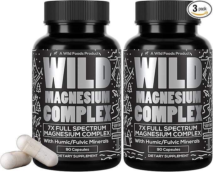 Wild Foods Magnesium Complex Supplement with 7X Forms | High Absorption, Full Spectrum, Easy Digestion | 500mg Glycinate, Bisglycinate, Malate, Orotate, Citrate, Taurate | 90 Capsule (Pack of 3)