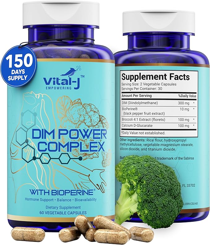 4-in-1 DIM Potent Complex 300mg - Estrogen Balance and Metabolism, Energy & Menopause Support Supplement with Bioperine (x4), Calcium and Broccoli Extract - for Women and Men 150 Servings