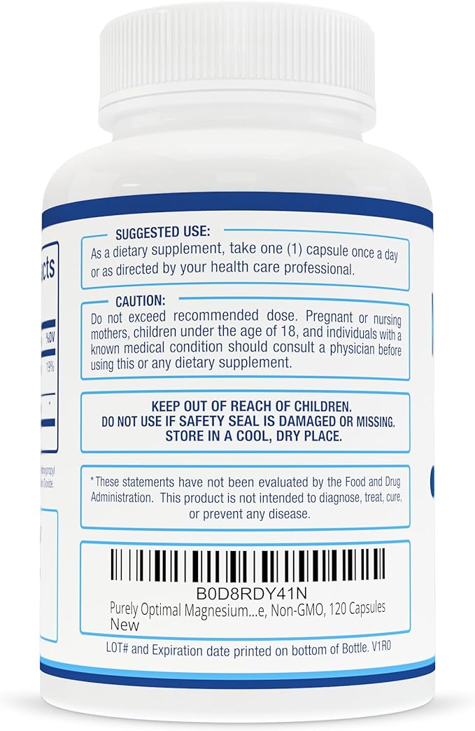 - Non-GMO & Gluten-Free Formula: Purely Optimal Magnesium Citrate is crafted with your wellness in mind. Our supplement is non-GMO, gluten-free, and made with quality ingredients, so you can feel confident in every capsule as you enhance your body’s natural resilience and vitality