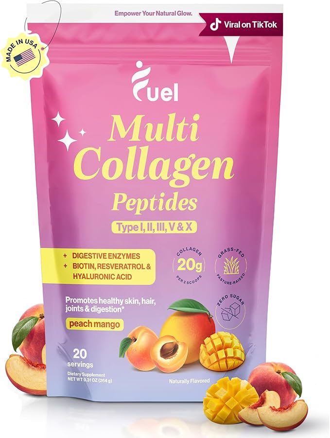 Fuel Beauty Blend Premium multi Collagen Protein Powder – 11-in-1 Collagen formula for Women with Resveratrol Extract Hyaluronic Acid, Biotin beauty supplements Hair, Skin & Nails Support– Peach Mango