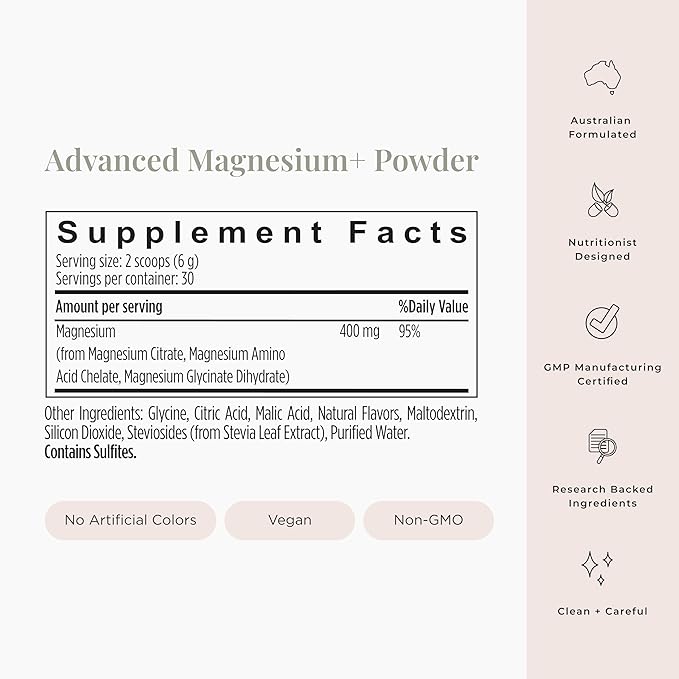 - Three Types Of Magnesium: Each serving is balanced with three different types of magnesium: glycinate, citrate, and amino acid chelate.