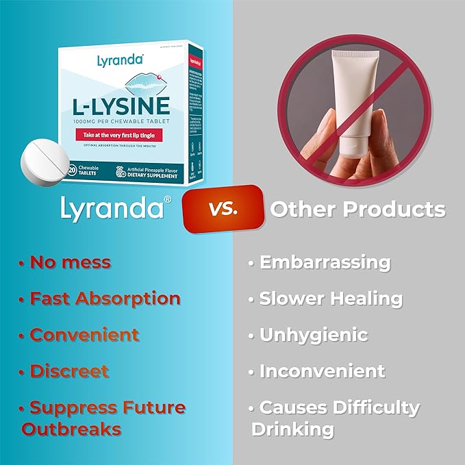 Lyranda® - Lysine Cold Sore Treatment - Chewable L-Lysine Tablets - Faster Absorption and Better Hygiene