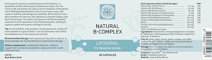 KALA HEALTH Natural Liposomal B Complex Capsules with All 6 Important B Vitamins (60)