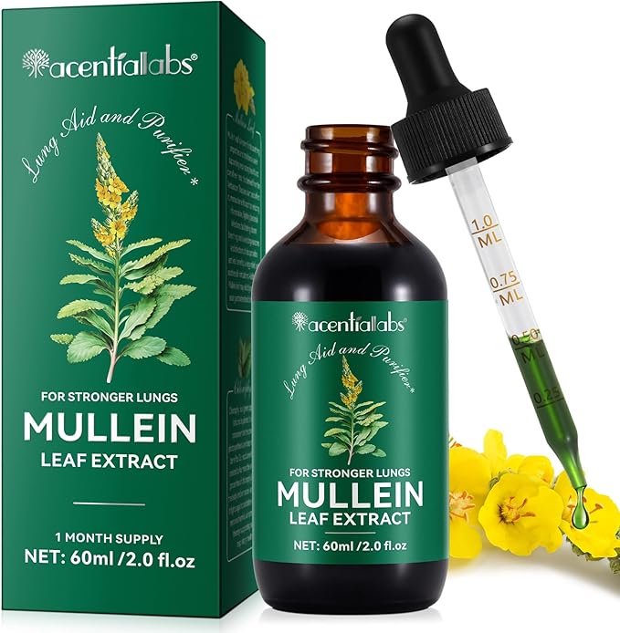 Mullein Drops, Mullein Leaf Extract for Lungs, Mulleins Leaf Drops for Lung Cleanse and Phlegm, Fast Absorption Powerful Mulleins Extract for Stronger Lungs (1)