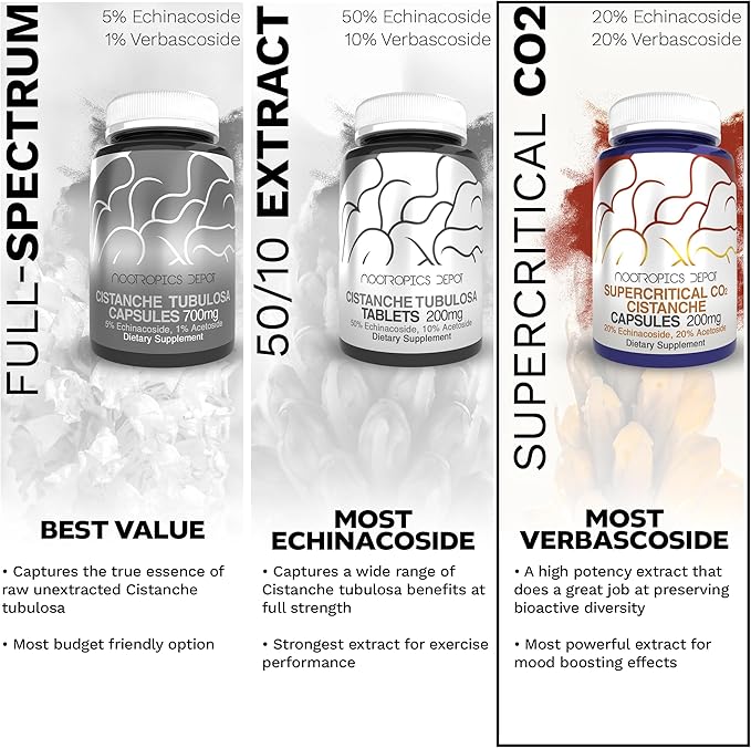 Nootropics Depot Cistanche Supercritical CO2 Extract Capsules | 20% Echinacoside + 20% Verbascoside (Acetoside) | 120 Count