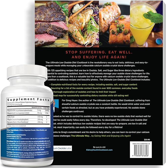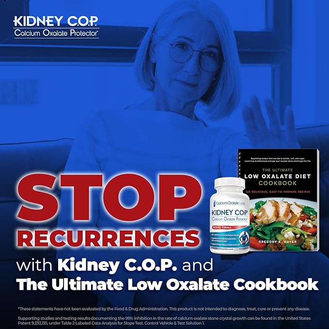 Kidney COP Calcium Oxalate Protector 120 Capsules, Patented Kidney Support for Calcium Oxalate Crystals, Stop Recurrence (Starter Pack - 1 Btl (120 Caps) and 1 Ultimate Low Oxalate Diet Cookbook)