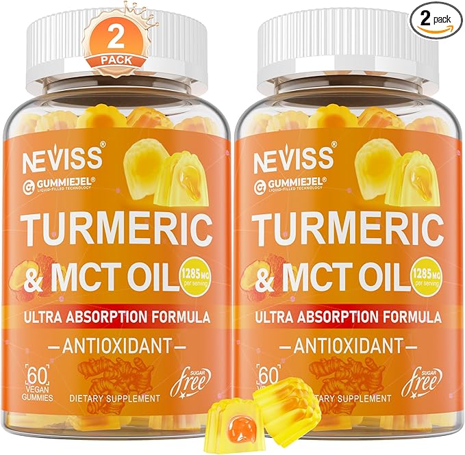 Turmeric Curcumin Gummies for Adults, with Medium Chain Triglycerides (MCT) Oil, Black Pepper Extract, Ultra Absorption, Sugar Free, 120 Gummies, 60 Servings