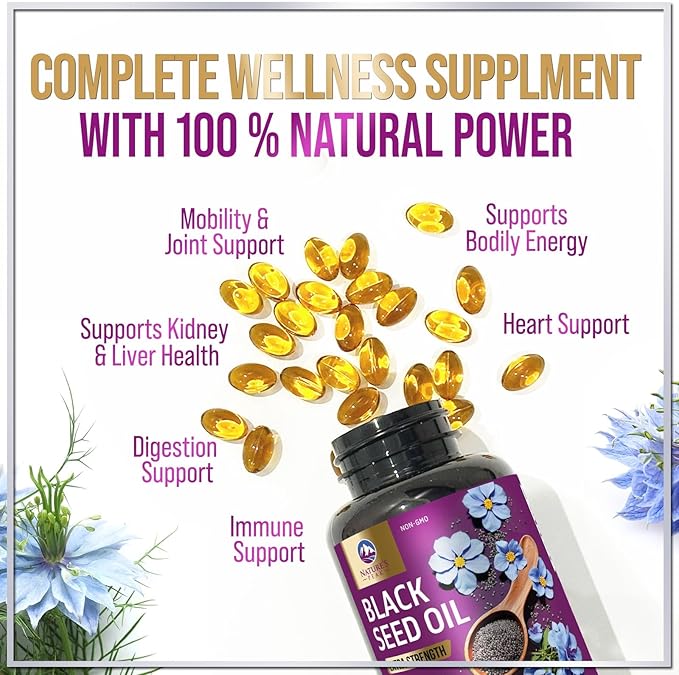 - Black Seed Oil Capsules: Each serving delivers 1000mg of pure Nigella Sativa black seed oil, carefully crafted to support overall wellness, including immune and digestive health support