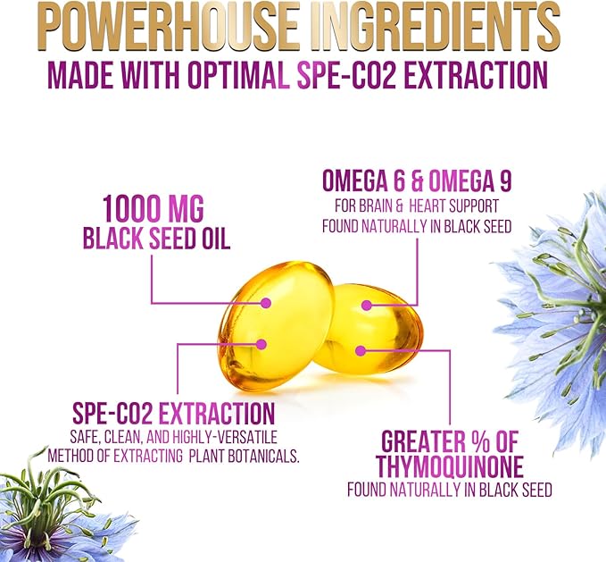 - Black Seed Oil Capsules: Each serving delivers 1000mg of pure Nigella Sativa black seed oil, carefully crafted to support overall wellness, including immune and digestive health support