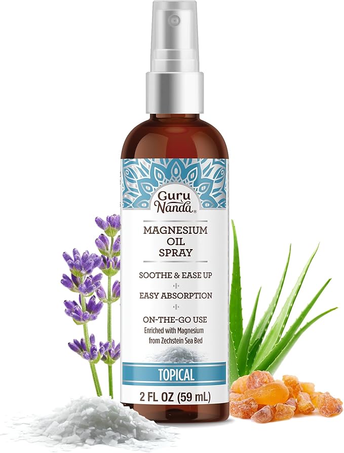 GuruNanda Magnesium Oil Spray (2 Fl Oz), Topical Magnesium Spray with Natural Essential Oils & Aloe Vera, Helps with Muscle Soreness & Relaxation, Cruelty-Free
