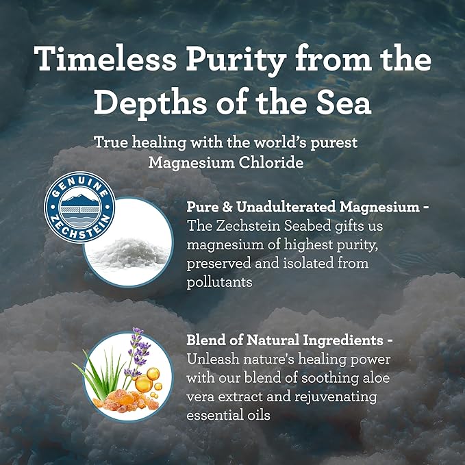- Purest Magnesium - Sourced from the pristine Zechstein seabed, our Zechstein magnesium oil contains fast-absorbing minerals infused with a blend of essential oils to accelerate your muscle recovery