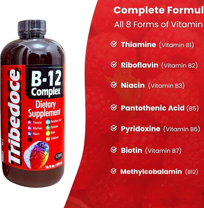 - High Potency B-12 Complex: Tribedoce B-12 Complex features a comprehensive blend of essential B vitamins, including Thiamine (B1), Riboflavin (B2), Niacin (B3), Pantothenic Acid (B5), Pyridoxine (B6), Biotin (B7), and Cobalamin (B12).
