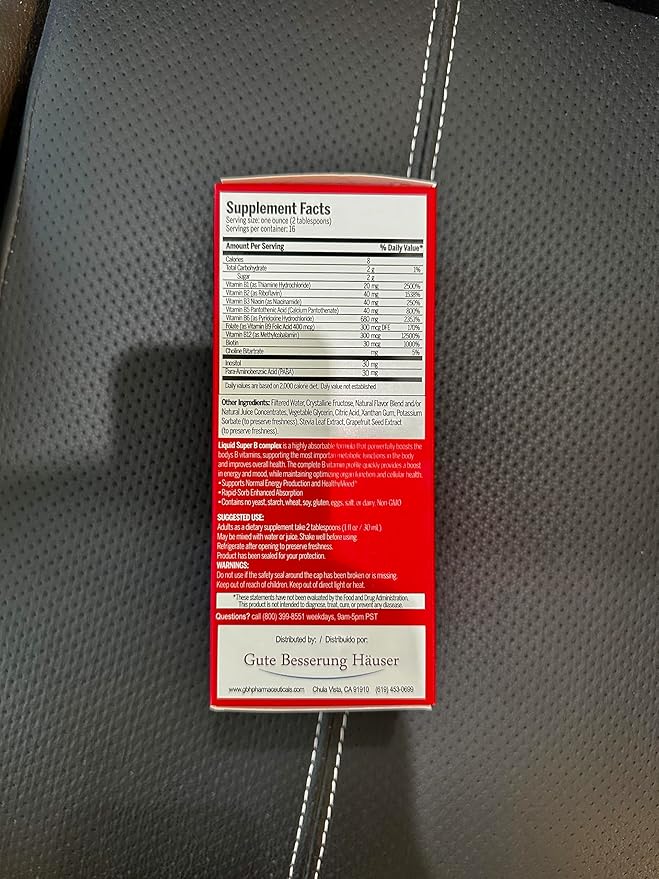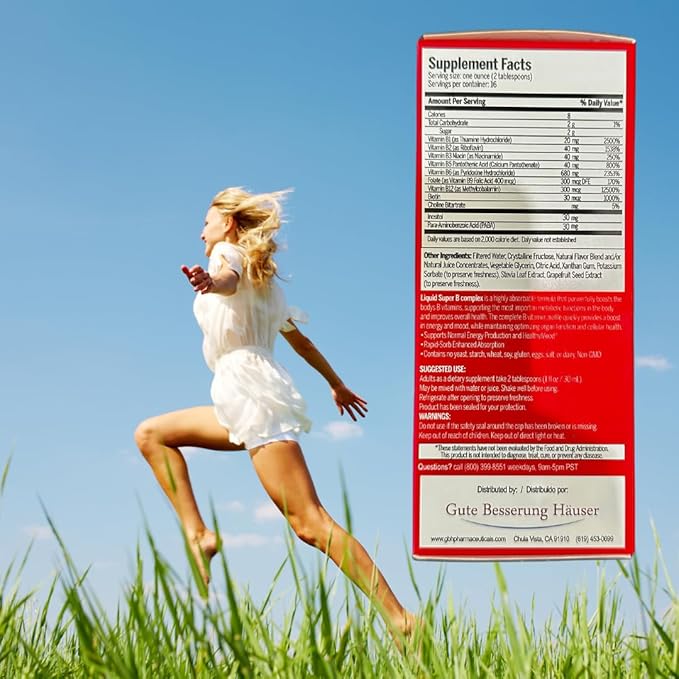 B-12 Complex Liquid Dietary Supplement - High Potency Vitamin B Complex with Thiamine, Riboflavin, Niacin, Pantothenic Acid, Pyridoxine, Biotin, and Cobalamin, 16 fl oz