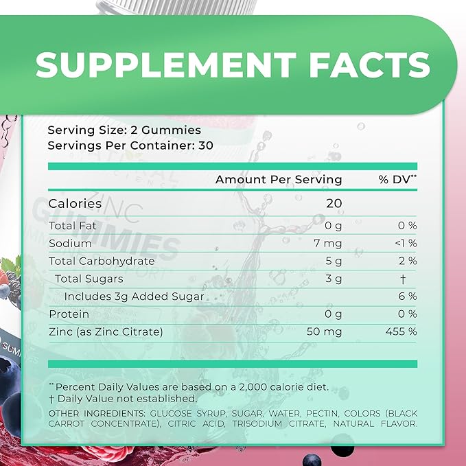 - Immune System Booster: Strengthen your body's natural defenses with our extra strength zinc gummies. Zinc plays a vital role in maintaining a healthy immune system. Daily intake of our zinc gummies can help fortify your immune defenses.