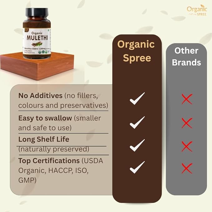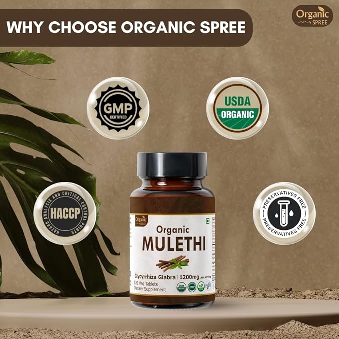 - Made with Goodness : Organic Spree Mulethi Tablets are USDA Organic Certified, Vegetarian, and free from artificial colors, flavors, and preservatives. Enjoy the benefits of Organic MULETHI in every tablet.*
