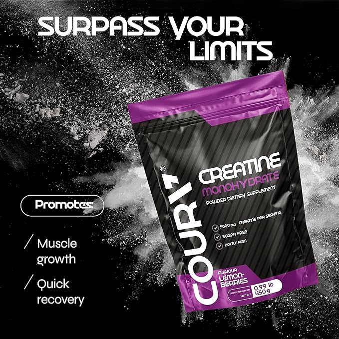 COURA Creatine Monohydrate Lemon-Berries Flavor - 450g - Sports Supplement - Strength and Endurance - Ideal for Intense Workouts - Gluten Free - Bottle Free