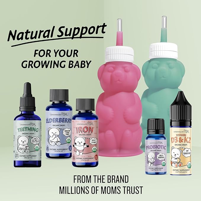 - 𝐒𝐔𝐏𝐏𝐎𝐑𝐓𝐒 𝐘𝐎𝐔𝐑 𝐁𝐀𝐁𝐘'𝐒 𝐆𝐑𝐎𝐖𝐓𝐇 & 𝐃𝐄𝐕𝐄𝐋𝐎𝐏𝐌𝐄𝐍𝐓 – Legendairy Milk Baby Vitamin D Drops for infants and toddlers deliver a synergistic blend of plant-based Vitamin D3 and K2 to help your baby grow. They help your baby develop strong teeth and bones, absorb calcium, and support brain & immune health. Best of all, our organic drops have the most active forms of Vitamins D and K that your baby can most readily absorb and benefit from.
