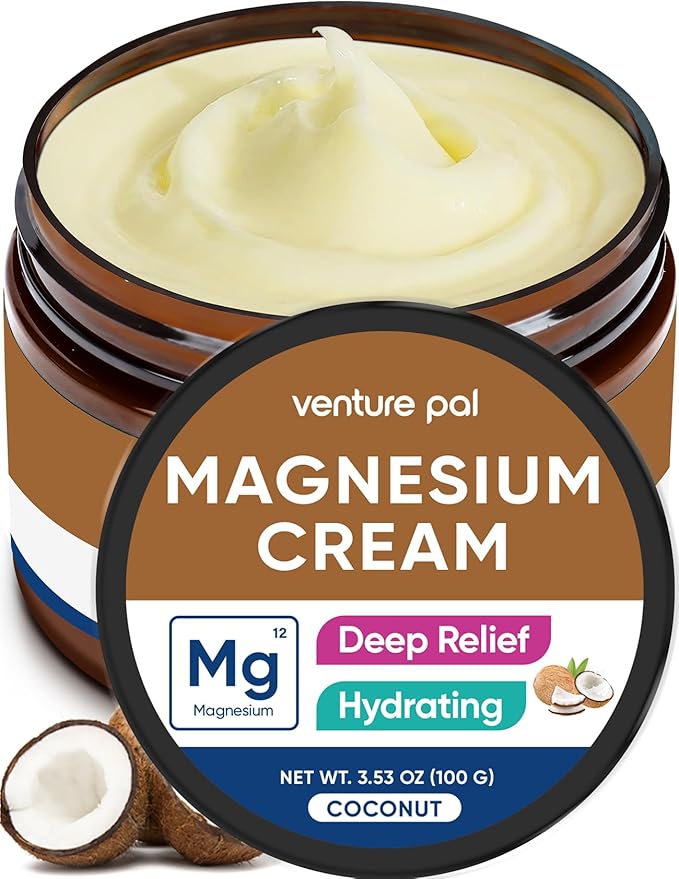 Venture Pal Magnesium Lotion, Topical Magnesium Cream for Sleep, Leg Cramps & Pain, Muscle Relaxation, Calm, Moisturizing Supplement with Coconut Oil, Shea Butter & Hyaluronic Acid, Safe for Kids