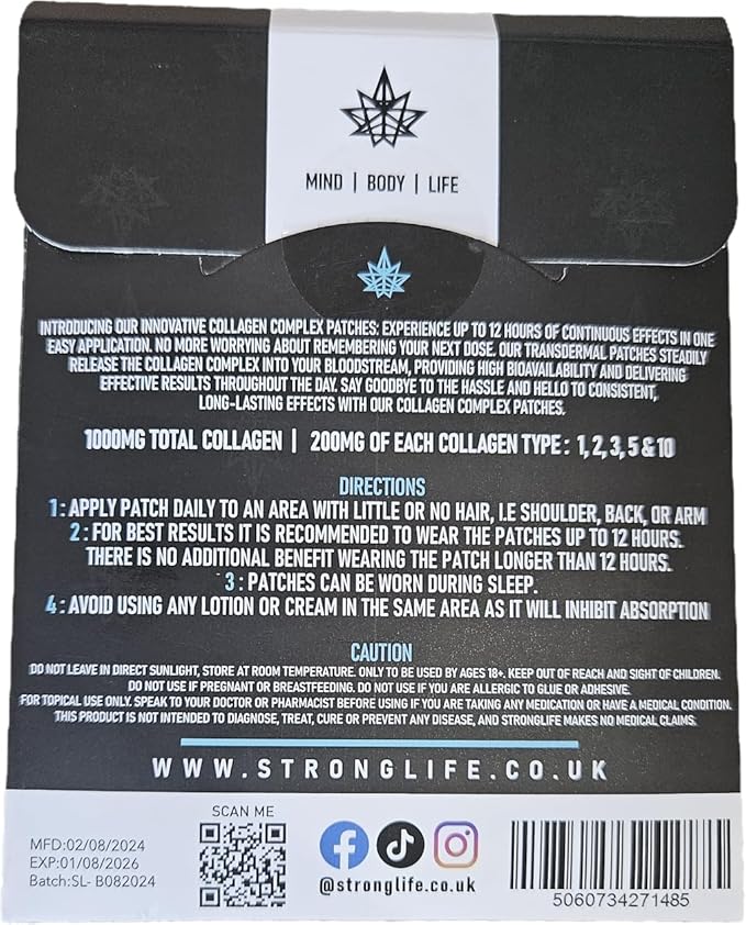 - Efficient Nutrient Absorption – Transdermal patches bypass the digestive system, delivering collagen directly to your body for effective absorption.