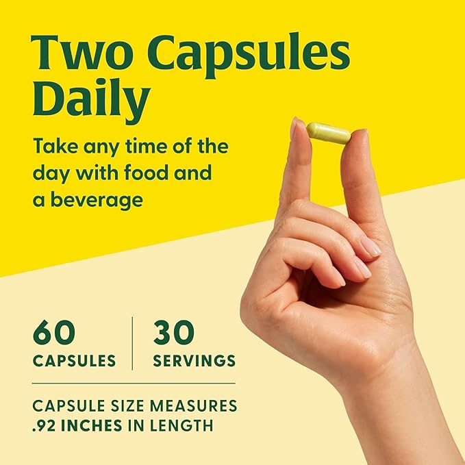 - TAKE ANY TIME OF DAY: Adults take two capsules any time of day with food and a beverage; Bottle contains 60 capsules for 30 servings