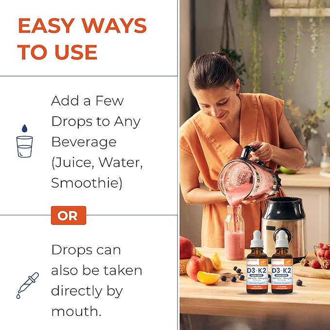 - ๐จ๐ป๐ณ๐น๐ฎ๐๐ผ๐ฟ๐ฒ๐ฑ ๐ฎ๐ป๐ฑ ๐๐ฎ๐๐ ๐๐ผ ๐จ๐๐ฒ vitamin d k Drops: Sandhuโs liquid vitamin D3 with K2 comes in a convenient unflavored form that can be easily mixed into your favorite beverage, helping you get the full benefits of this D3 K2 vitamins combination without any hassle.