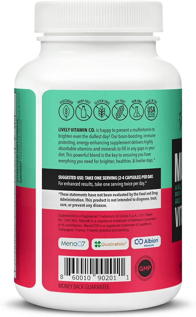 - ONLY THE FINEST INGREDIENTS TO KEEP YOU AND YOUR FAMILY HEALTHY - There is a reason this is the Lively Vitamin Co flagship product. Plain and simple, it works! This is the product that started it all and it is so popular that we started making other high-quality products to help with the needs of our customers. If you want a multi that works, you found it.