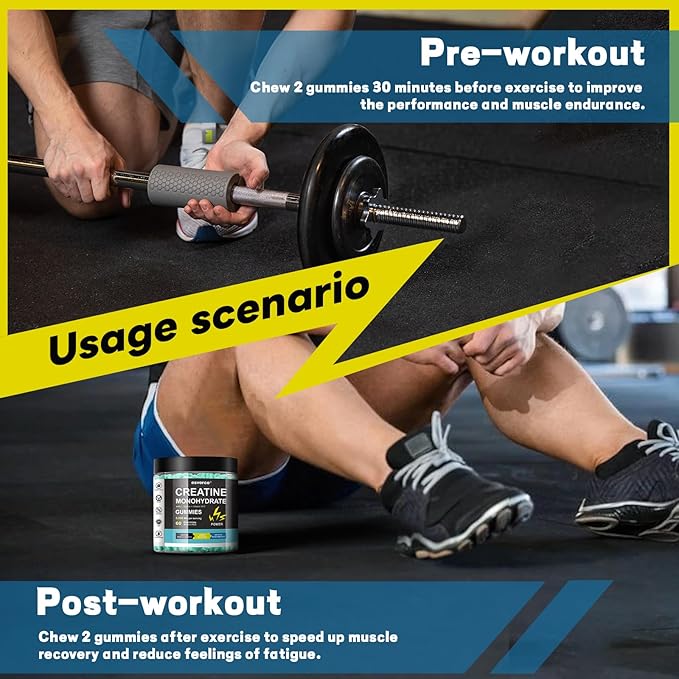 - [KEY BENEFITS] Help your fitness plan come to fruition with our Creatine Monohydrate Gummies, which are formulated to build muscle strength and endurance, and promote muscle recovery. Added L-Taurine and Vitamin B12 help maintain energy levels and overall athletic performance. Whether you're looking to increase muscle mass, recover faster after a workout, or build endurance during exercise, our gummies provide the powerful boost you need.