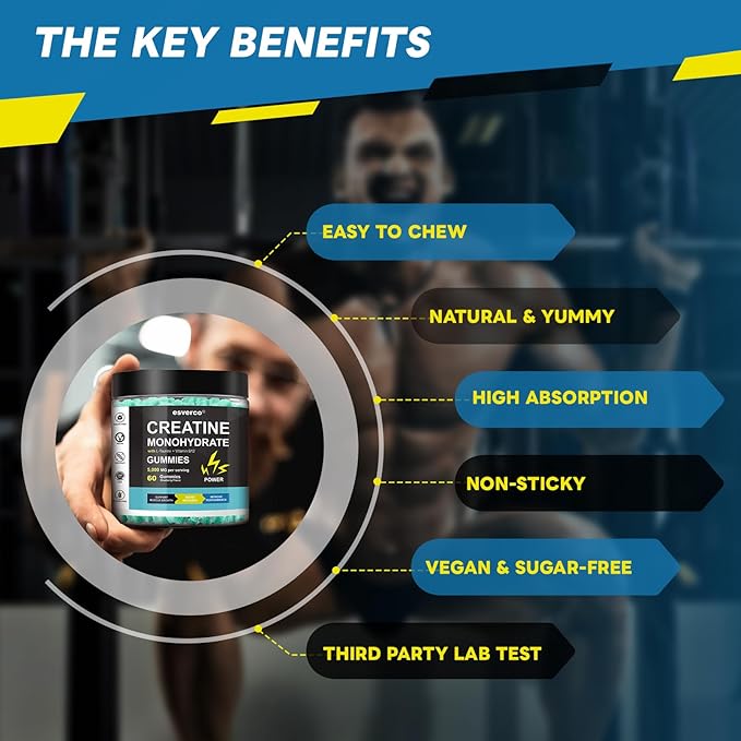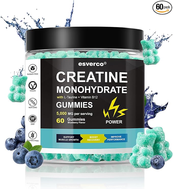 - [NATURAL & HEALTHY INGREDIENTS] ESVERCO gummies are made with a melt-proof formula, are NSF certified for the manufacture, and are delicious enough for you to enjoy the benefits of creatine. These non-GMO, vegan and gluten-free gummies are perfect for people with different dietary needs and preferences, ensuring a high-quality experience for them. At the same time, we've ditched artificial sweeteners and preservatives and used premium plant-based ingredients.