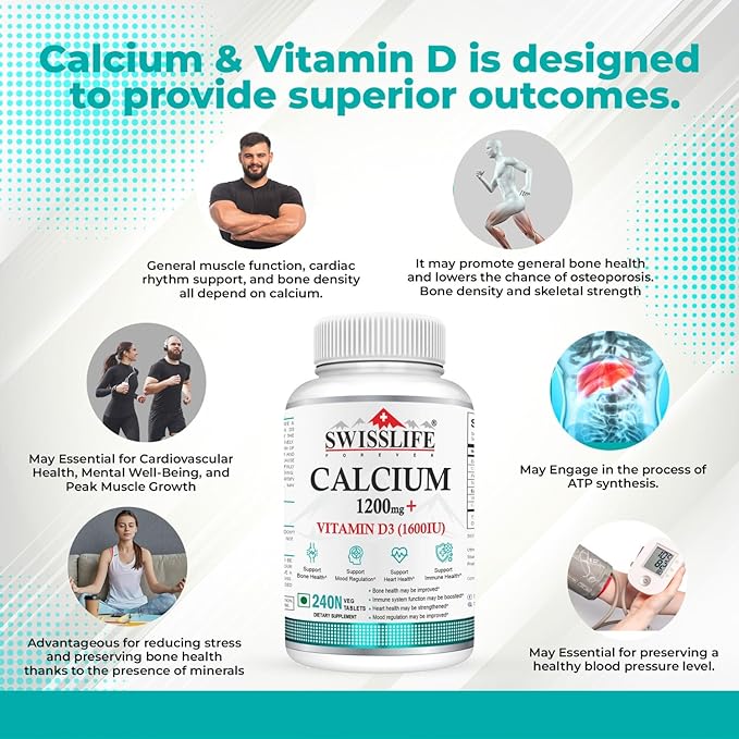 - ✔ HIGHEST ABSORPTION, HIGHEST BIOAVAILABILITY WITH CALCIUM & VITAMIN D SUPPLEMENT: Calcium is an important mineral that is necessary for numerous physiological processes, making it a useful component in nutraceutical compositions. Calcium promotes bone health, muscle and Hormone secretion, and energy metabolism. Vitamin D3 has also been connected to cardiovascular health, stress reduction, and blood pressure regulation.
