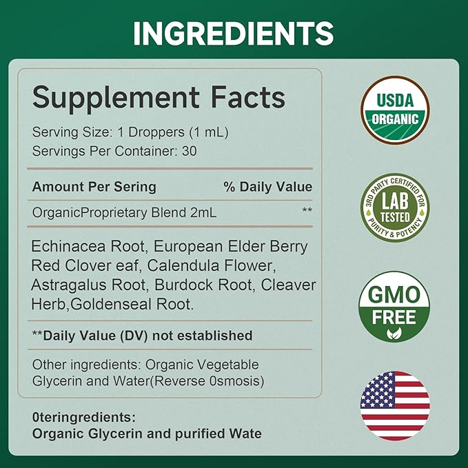 - Naturally Made & Thoughtfully Blended: To offer a premium lymphatic health drops, all the ingredients in our formula are naturally extracted! We hope this organic product can provide you with an outstanding lymphatic health experience—suitable for most people's tastes and your choice for a high-quality experience!