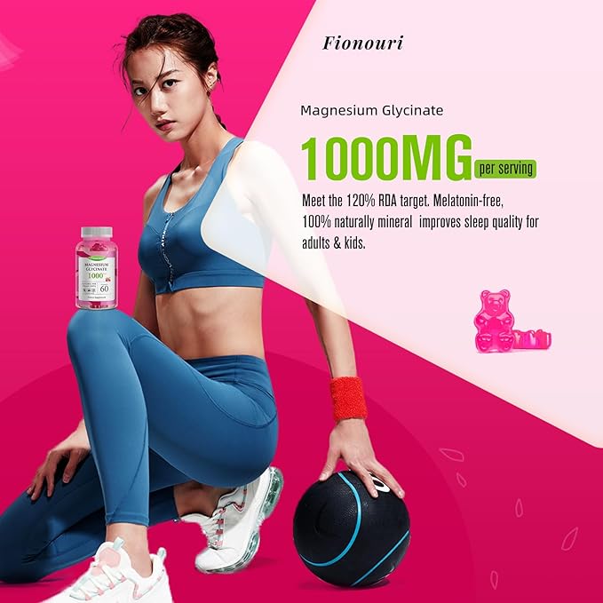 Magnesium Glycinate Gummies 1000mg - for Adults Magnesium Potassium Supplement with Vitamin D, B6, CoQ10 for Calm Mood & Sleep Support - 60 Raspberry Gummies -1 Pack