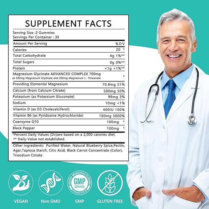 - Healthy and delicious gummies: Enjoy the benefits of magnesium glycinate gummies in a fun and easy-to-take form suitable for adults and children. These blueberry gummies are a magnesium supplement designed for your health and are a delicious and healthy addition to your daily life.